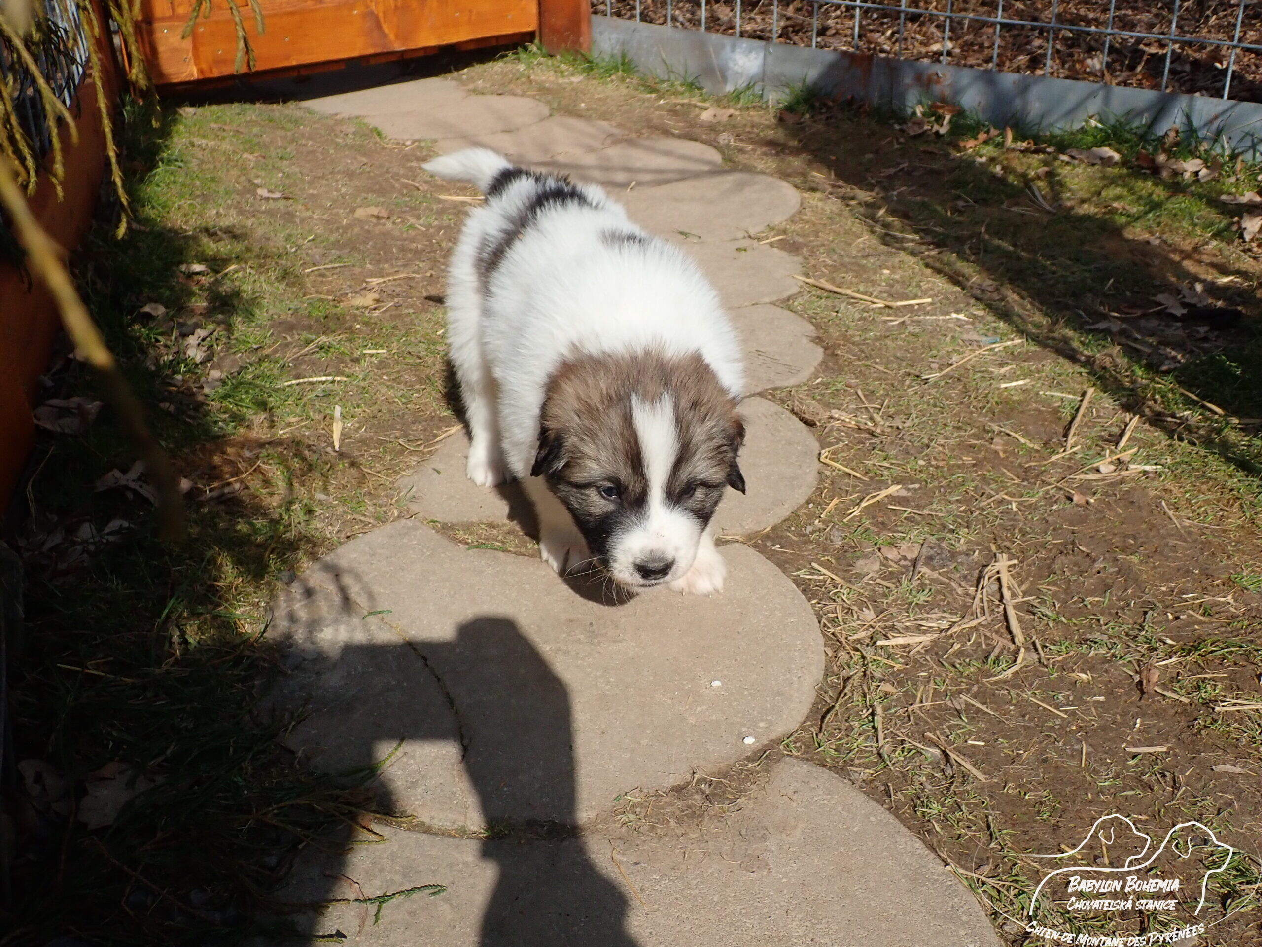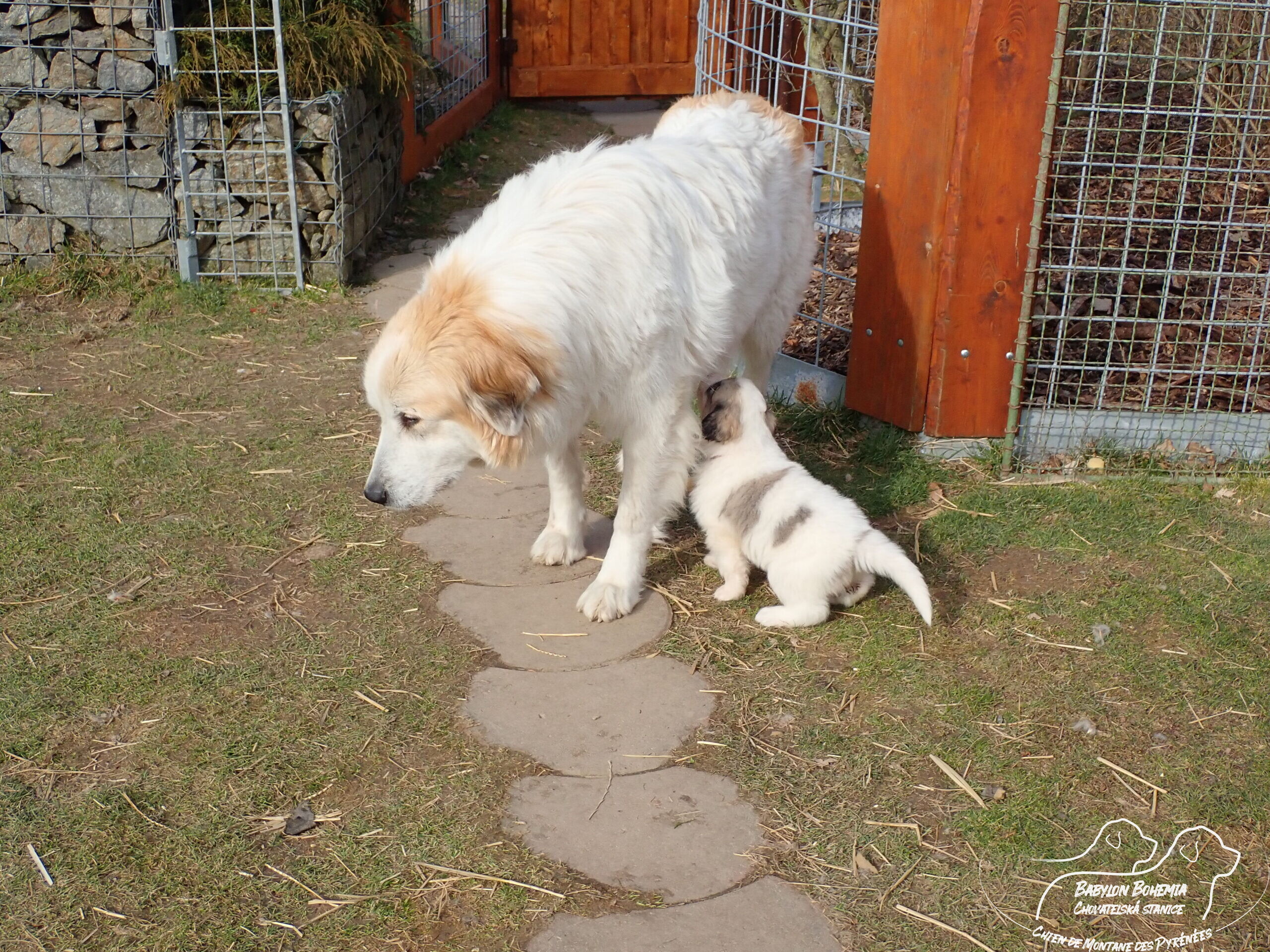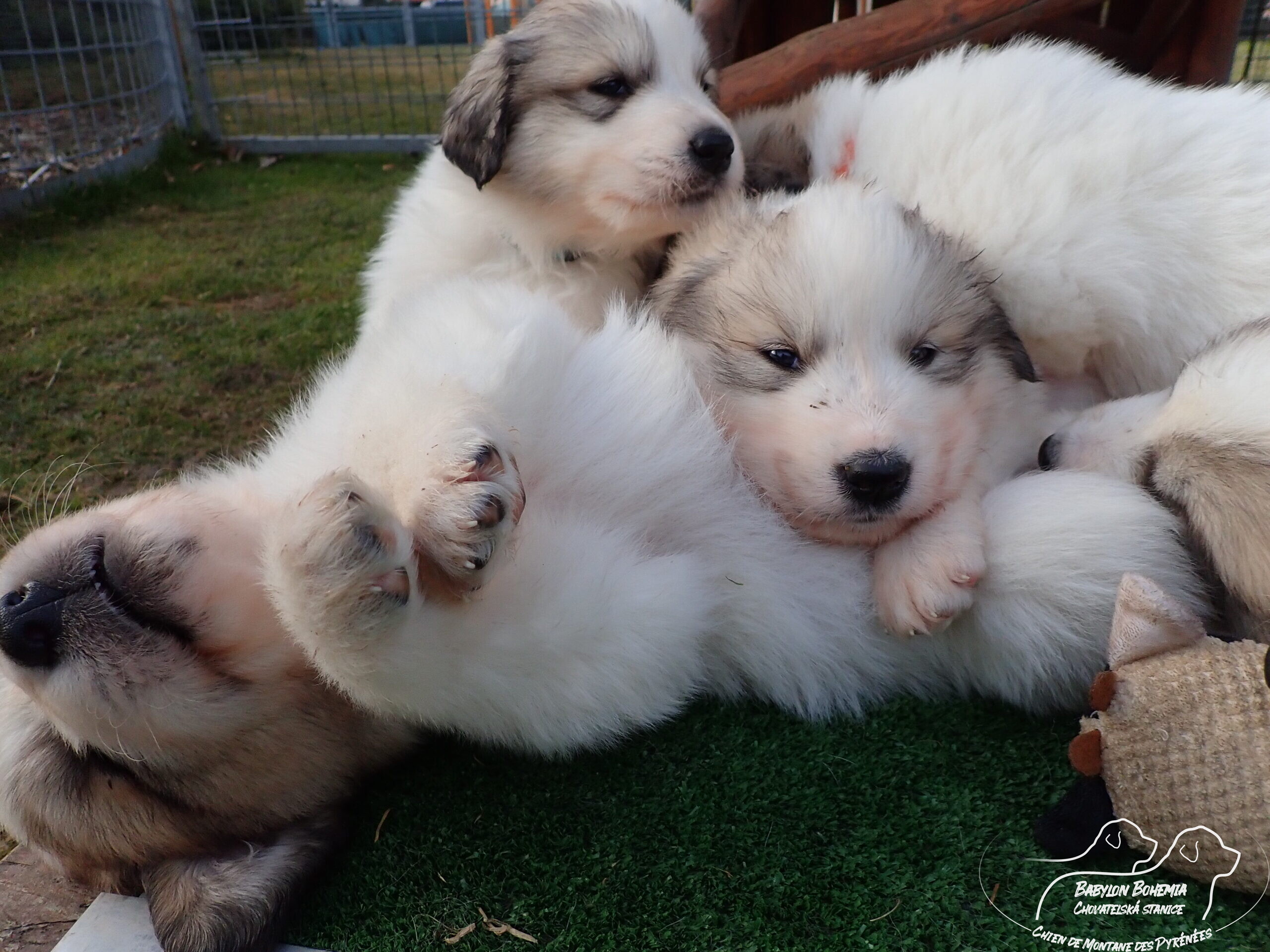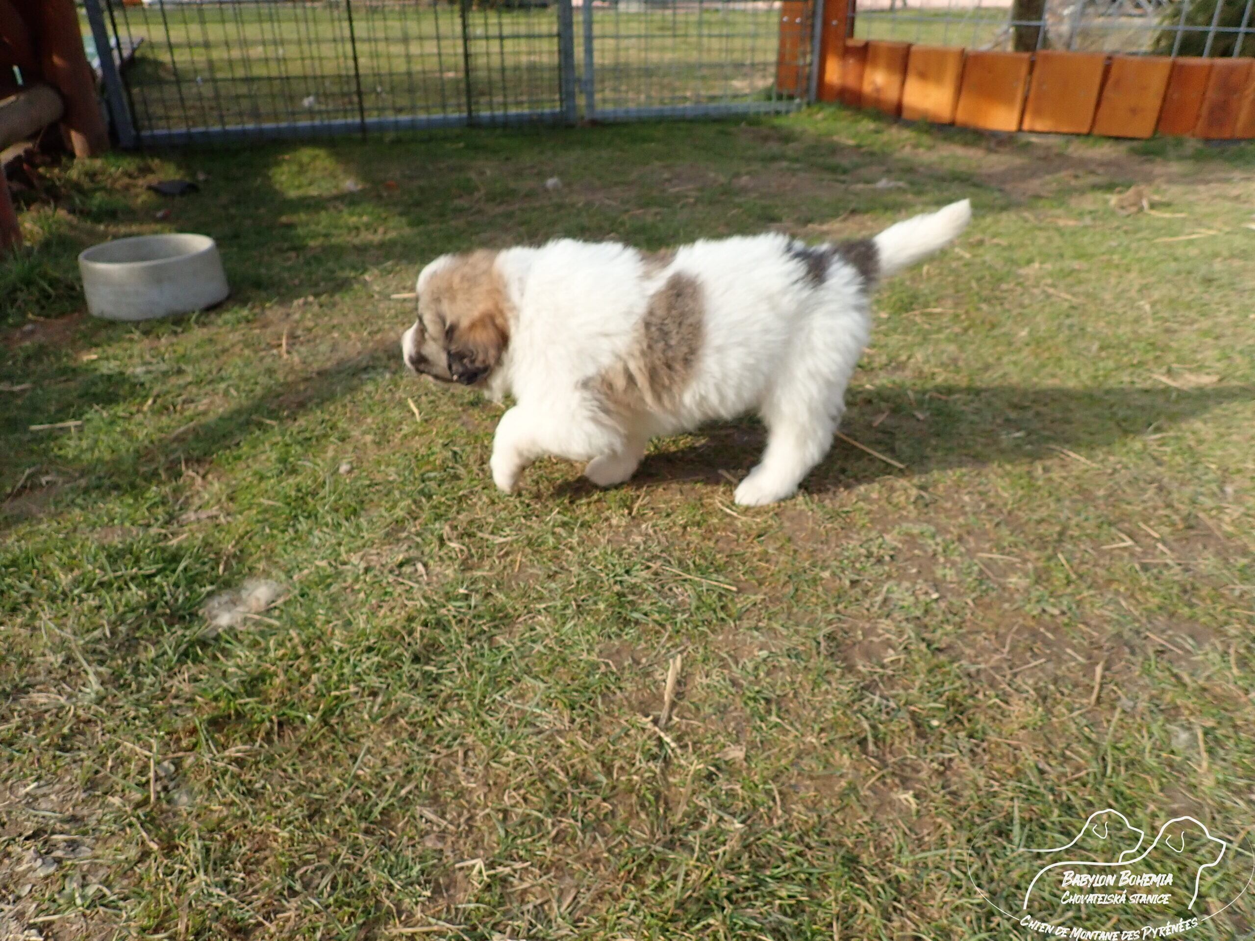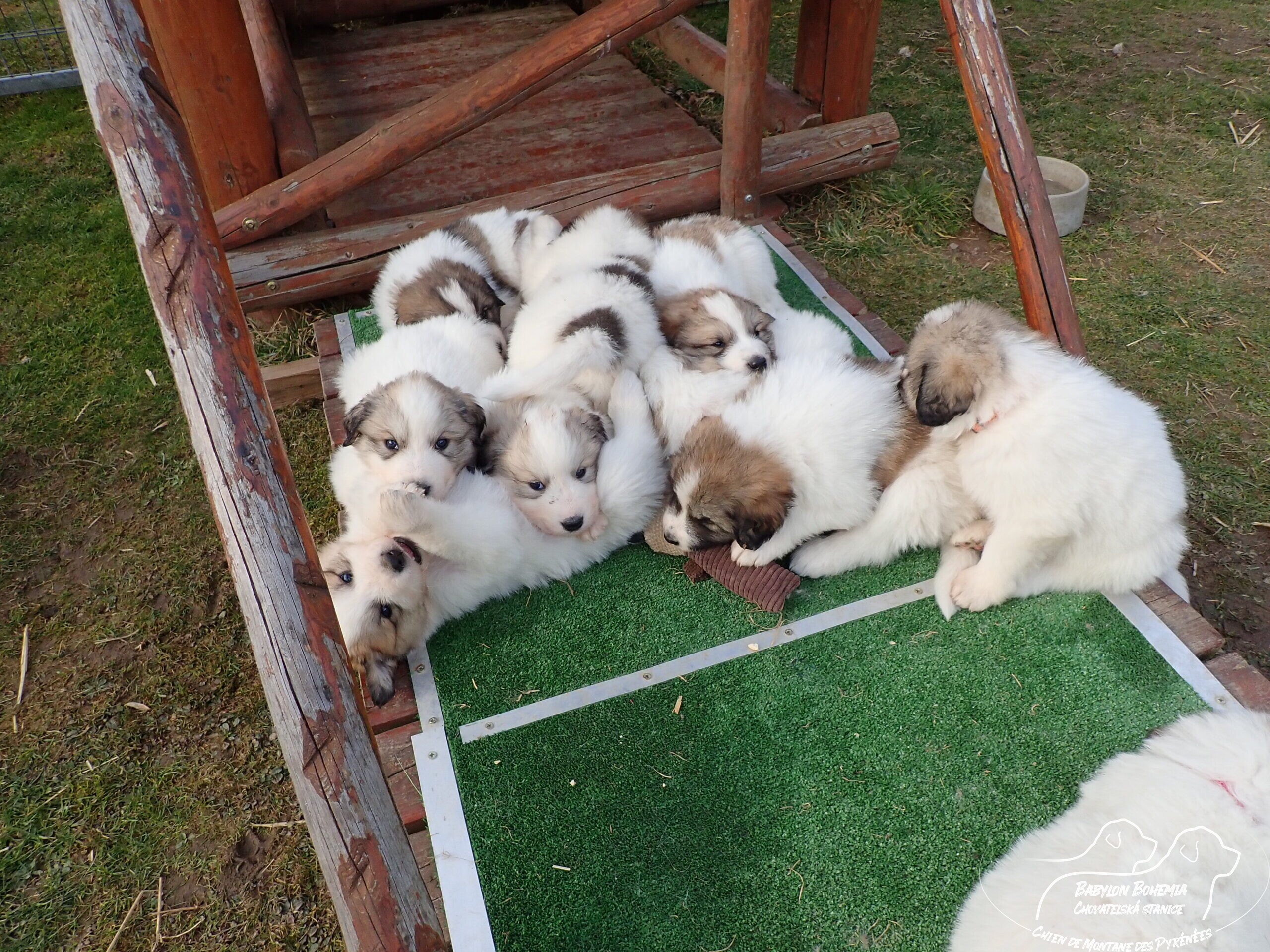 Štěňátka poznávají okolí kotce a nejbližší část zahrady. venku tráví většinu dne, užívají si sluníčka. Krmíme z misky, matka jim dává napít jen párkrát za den. Neustále je hlídá, ale zpovzdálí, aby měla od nich klid. Štěnda si hrají, perou se, vše ochutnávají a poznávají..