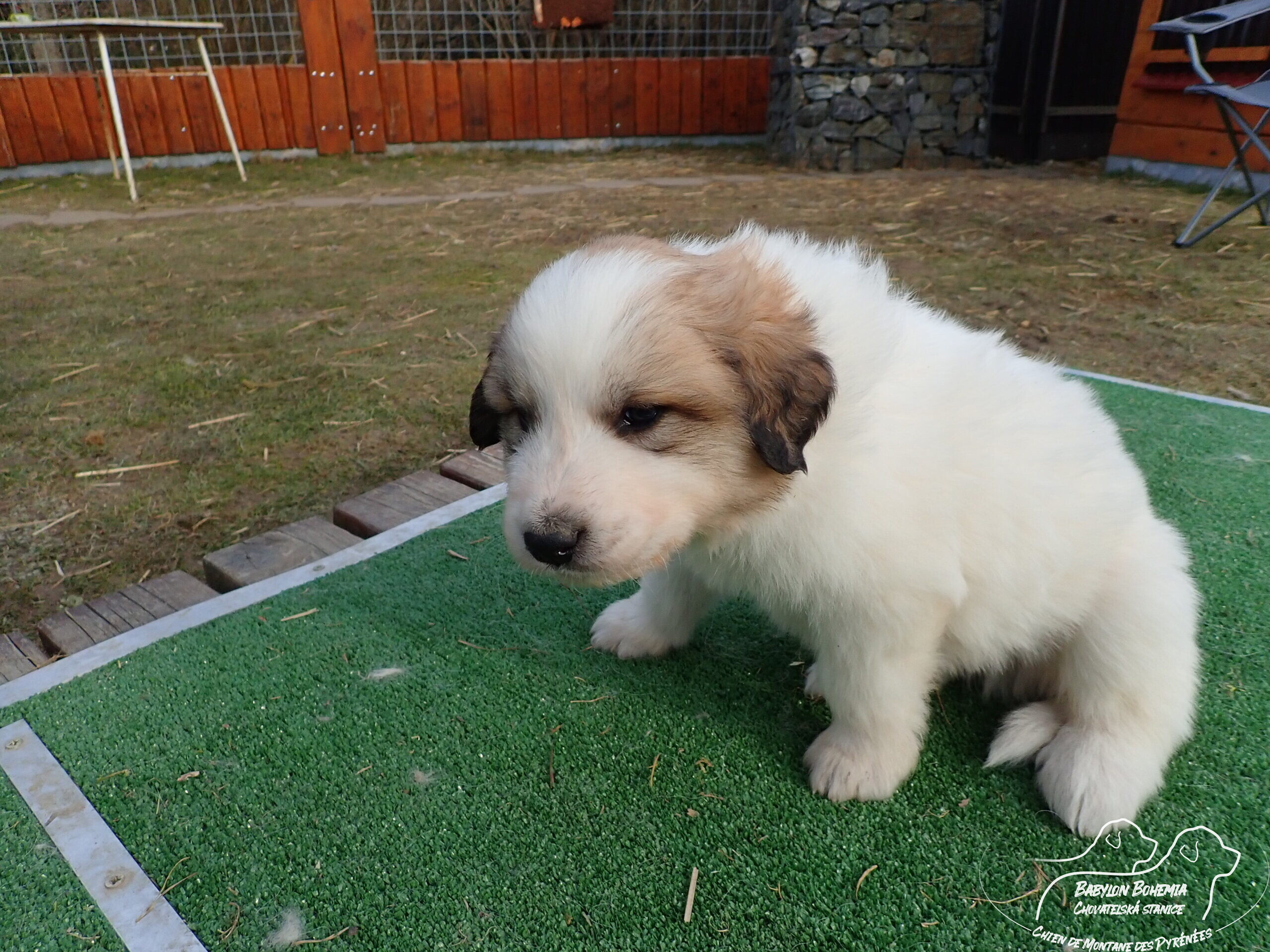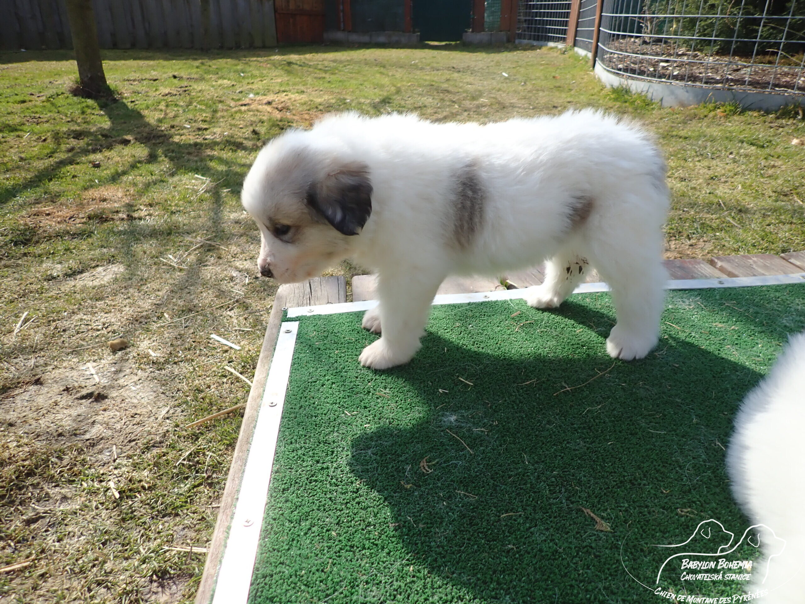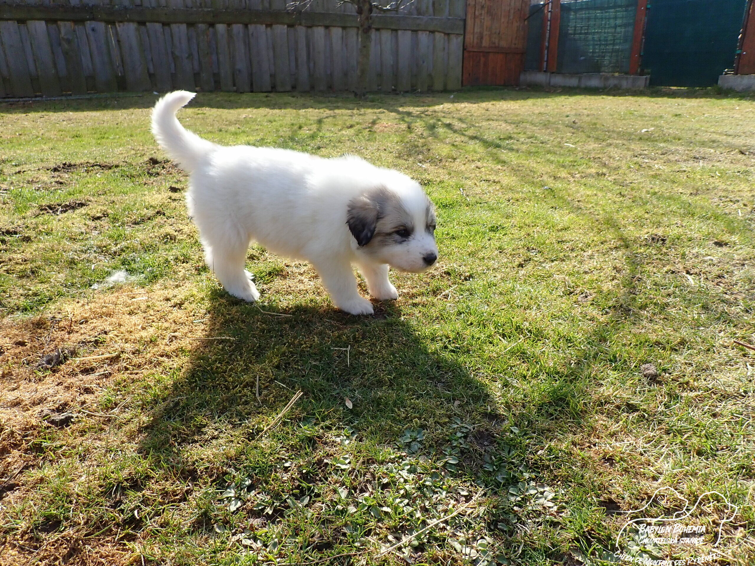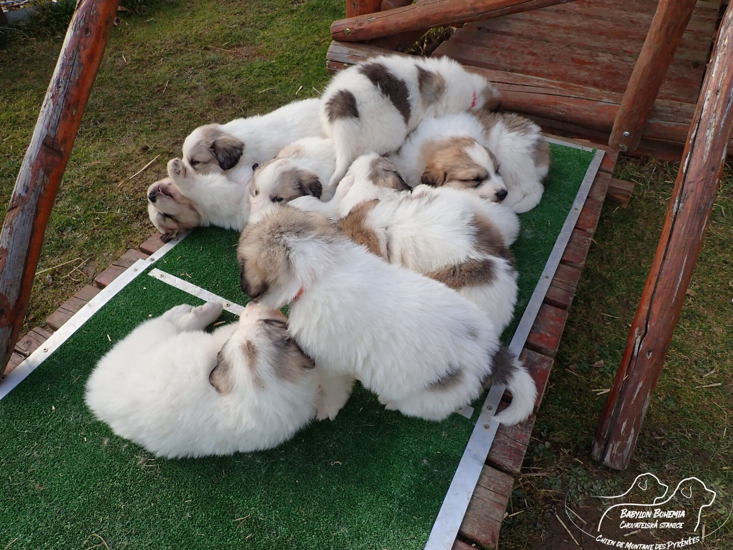 Štěňátka poznávají okolí kotce a nejbližší část zahrady. venku tráví většinu dne, užívají si sluníčka. Krmíme z misky, matka jim dává napít jen párkrát za den. Neustále je hlídá, ale zpovzdálí, aby měla od nich klid. Štěnda si hrají, perou se, vše ochutnávají a poznávají..