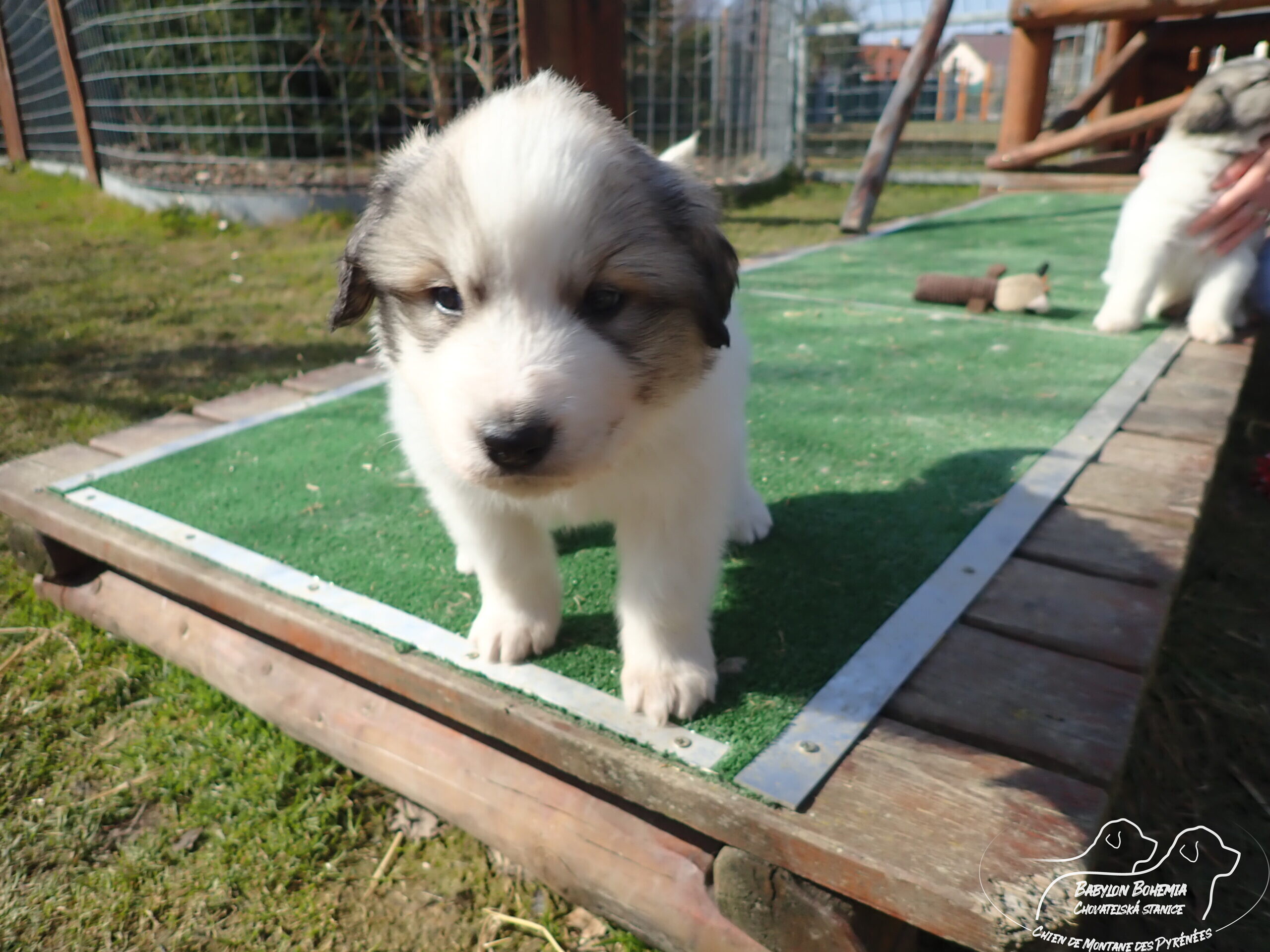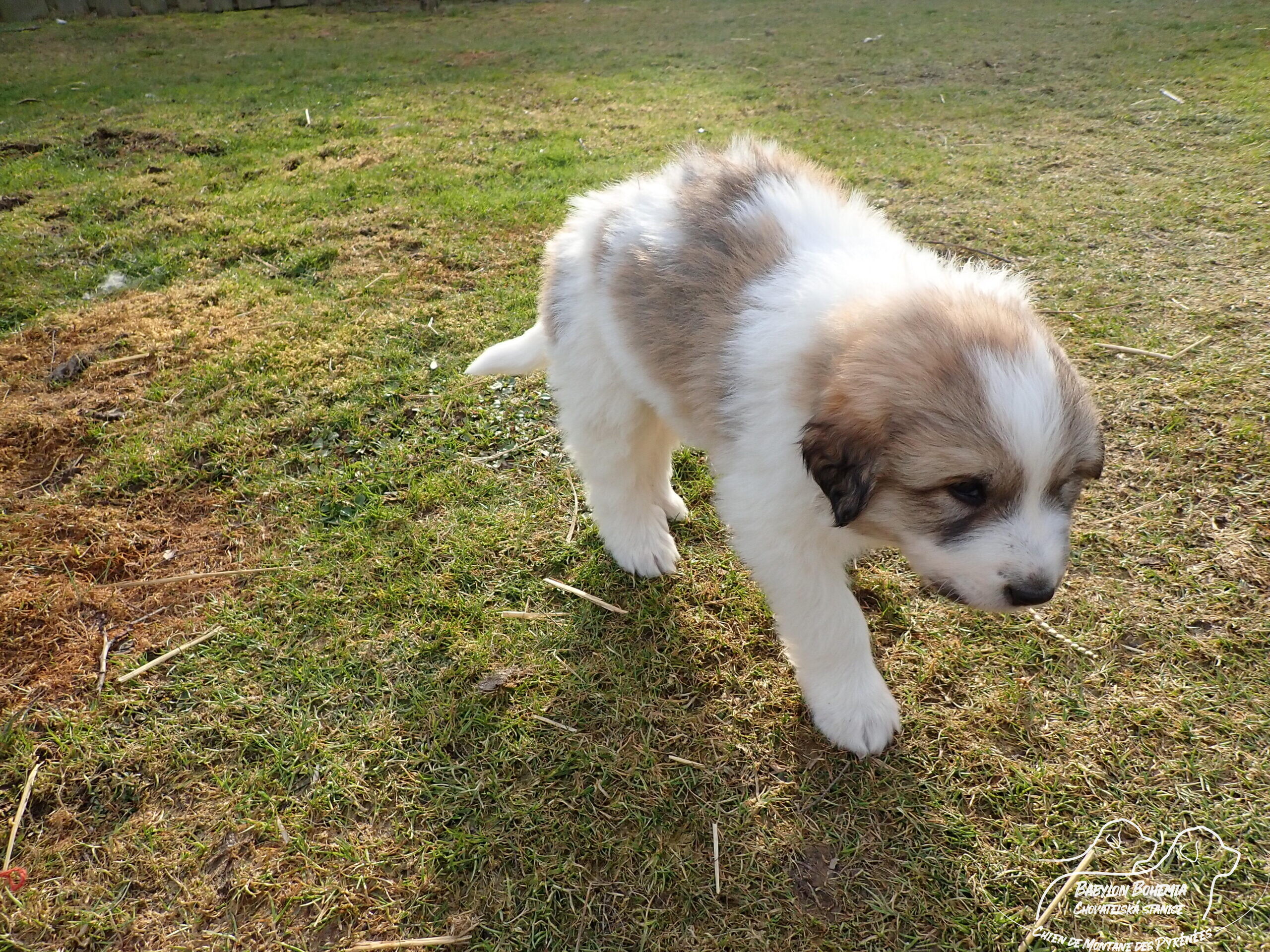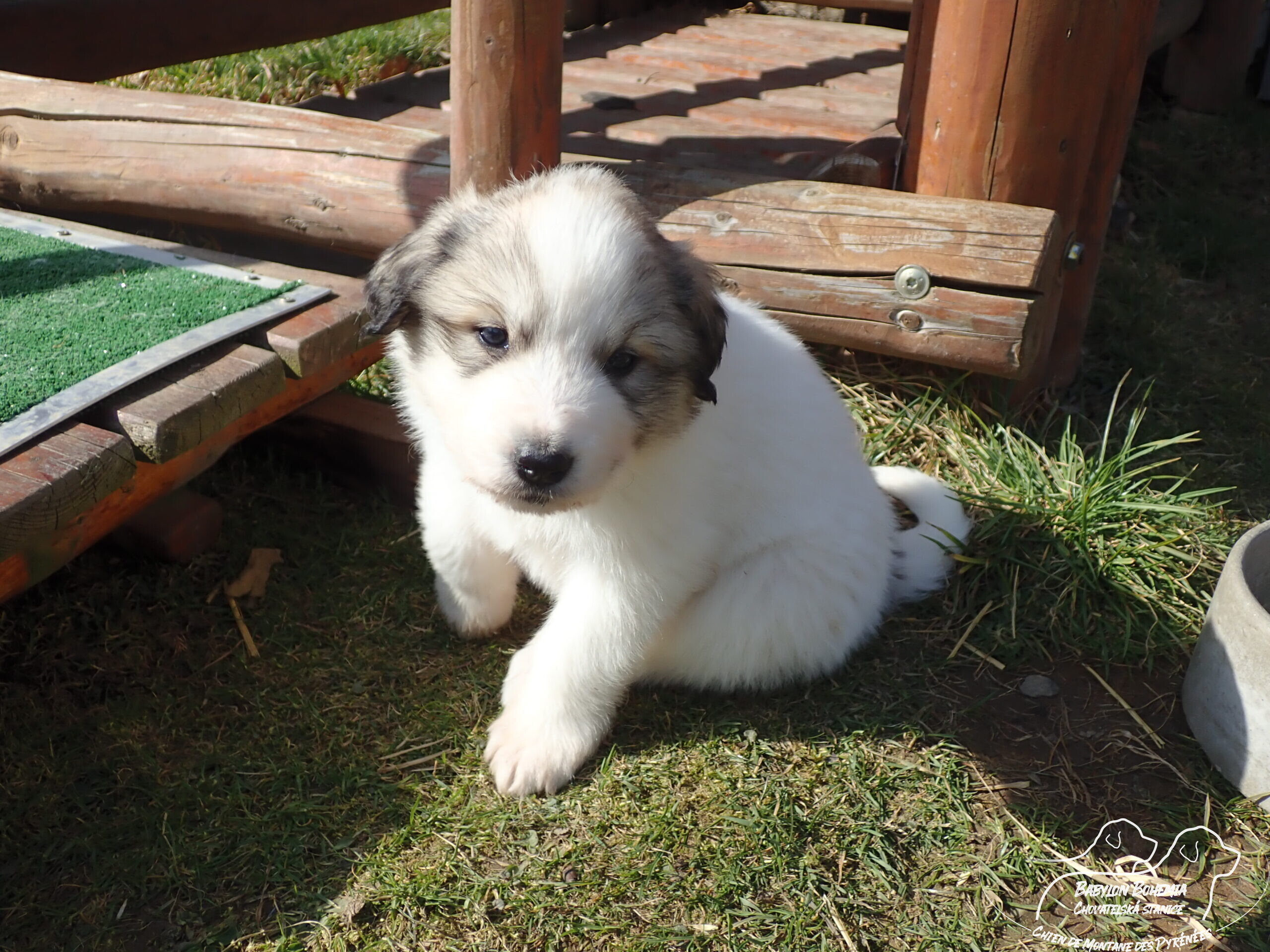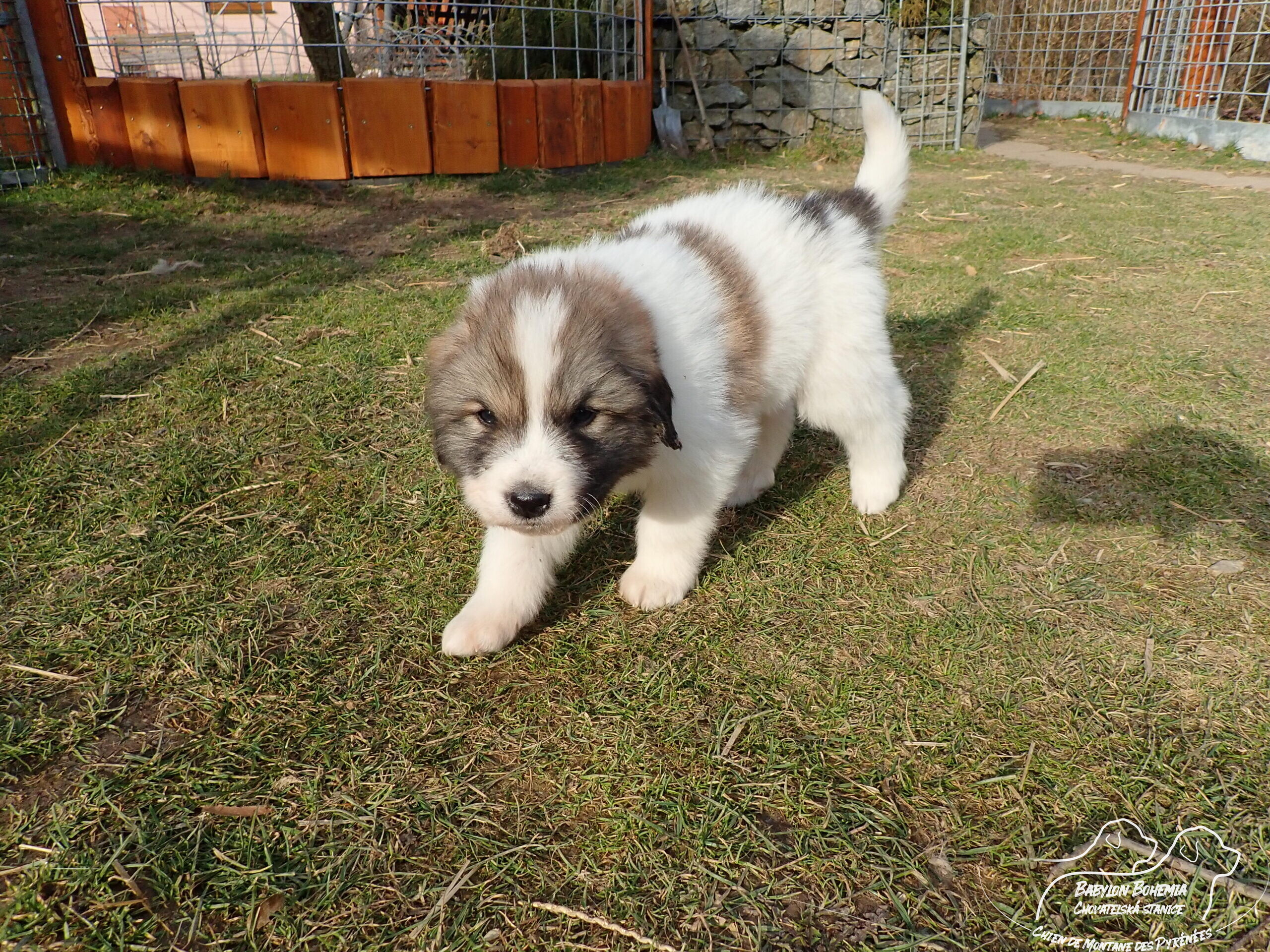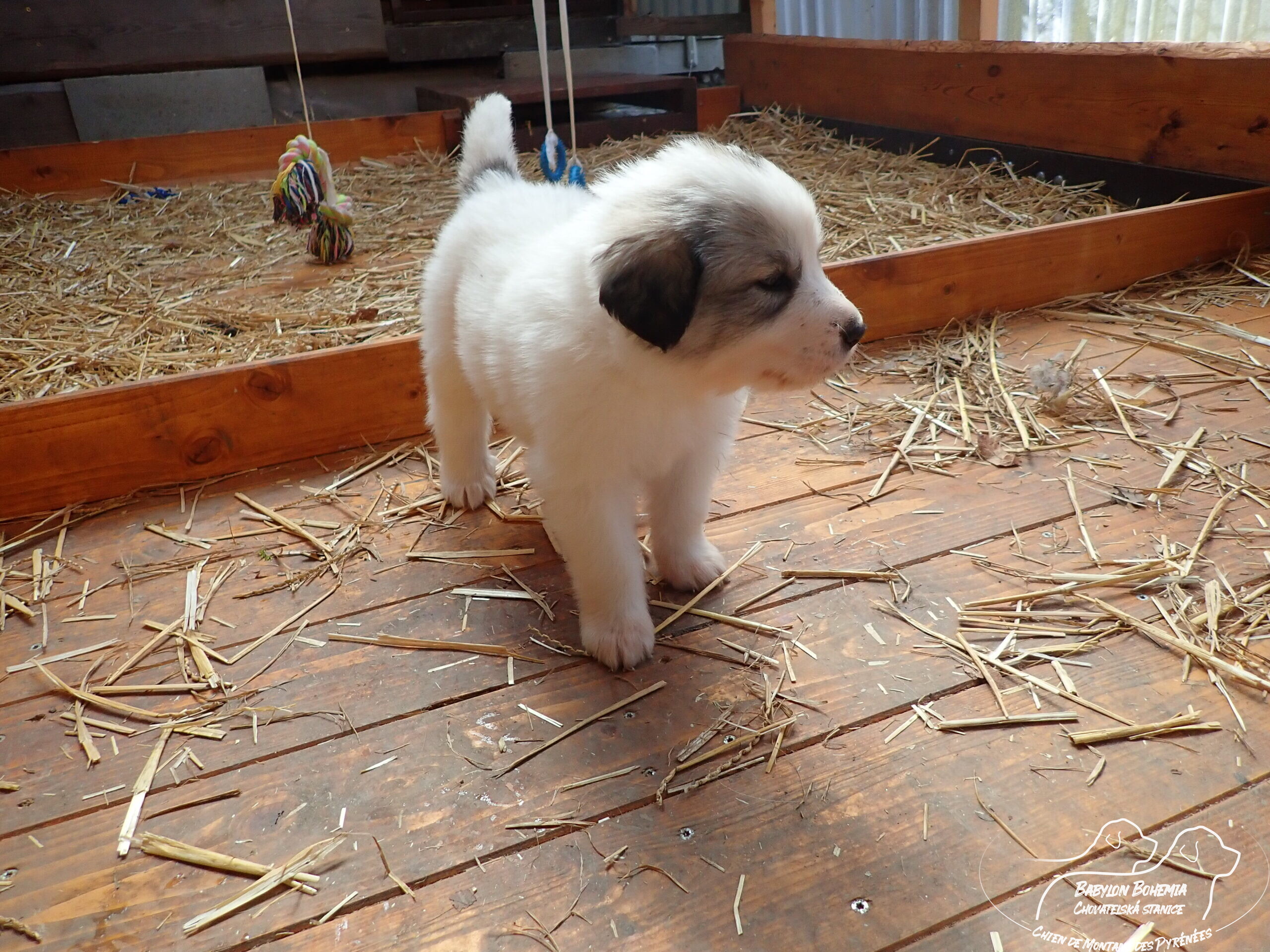 Štěňátka poznávají okolí kotce a nejbližší část zahrady. venku tráví většinu dne, užívají si sluníčka. Krmíme z misky, matka jim dává napít jen párkrát za den. Neustále je hlídá, ale zpovzdálí, aby měla od nich klid. Štěnda si hrají, perou se, vše ochutnávají a poznávají..