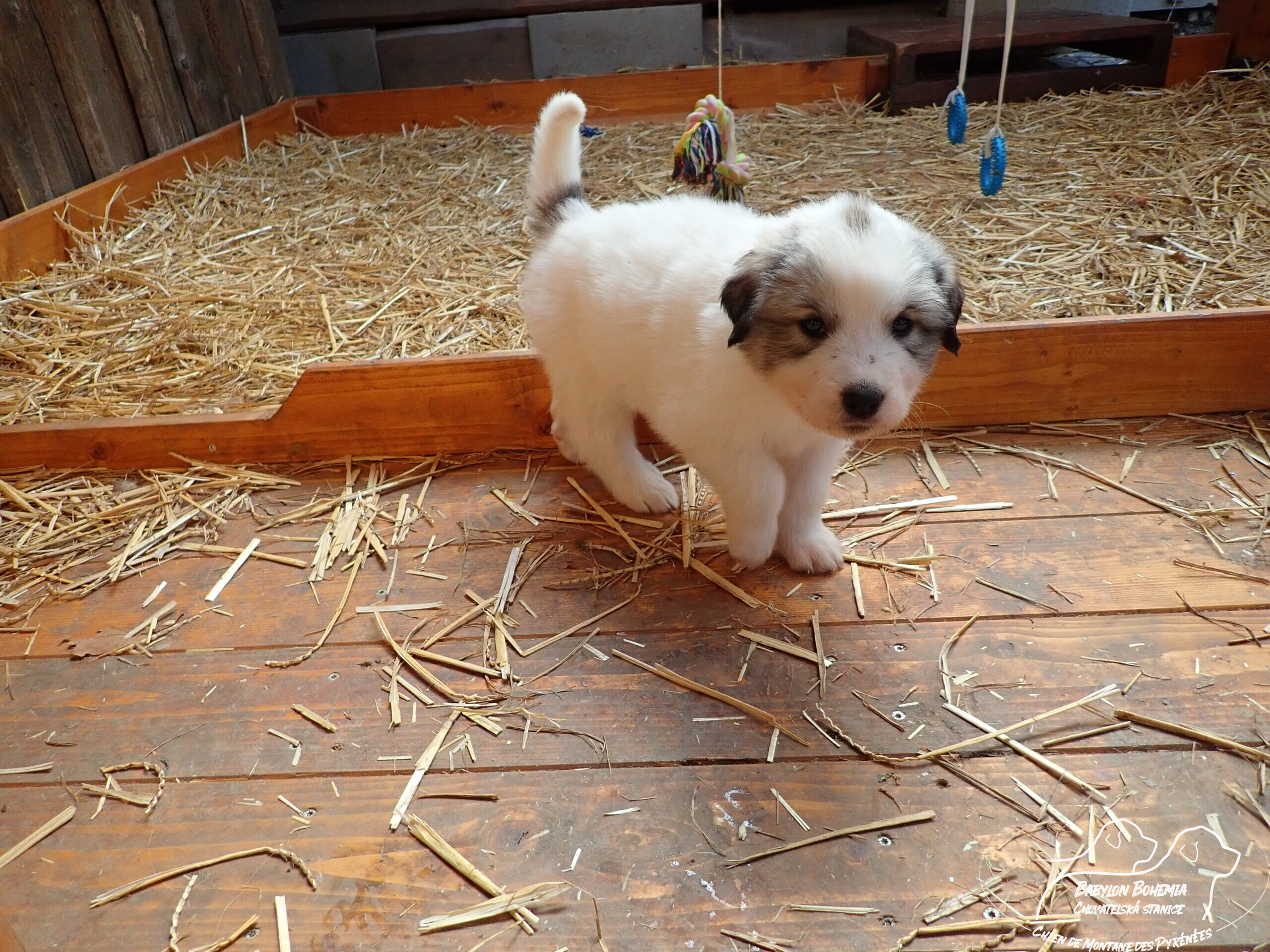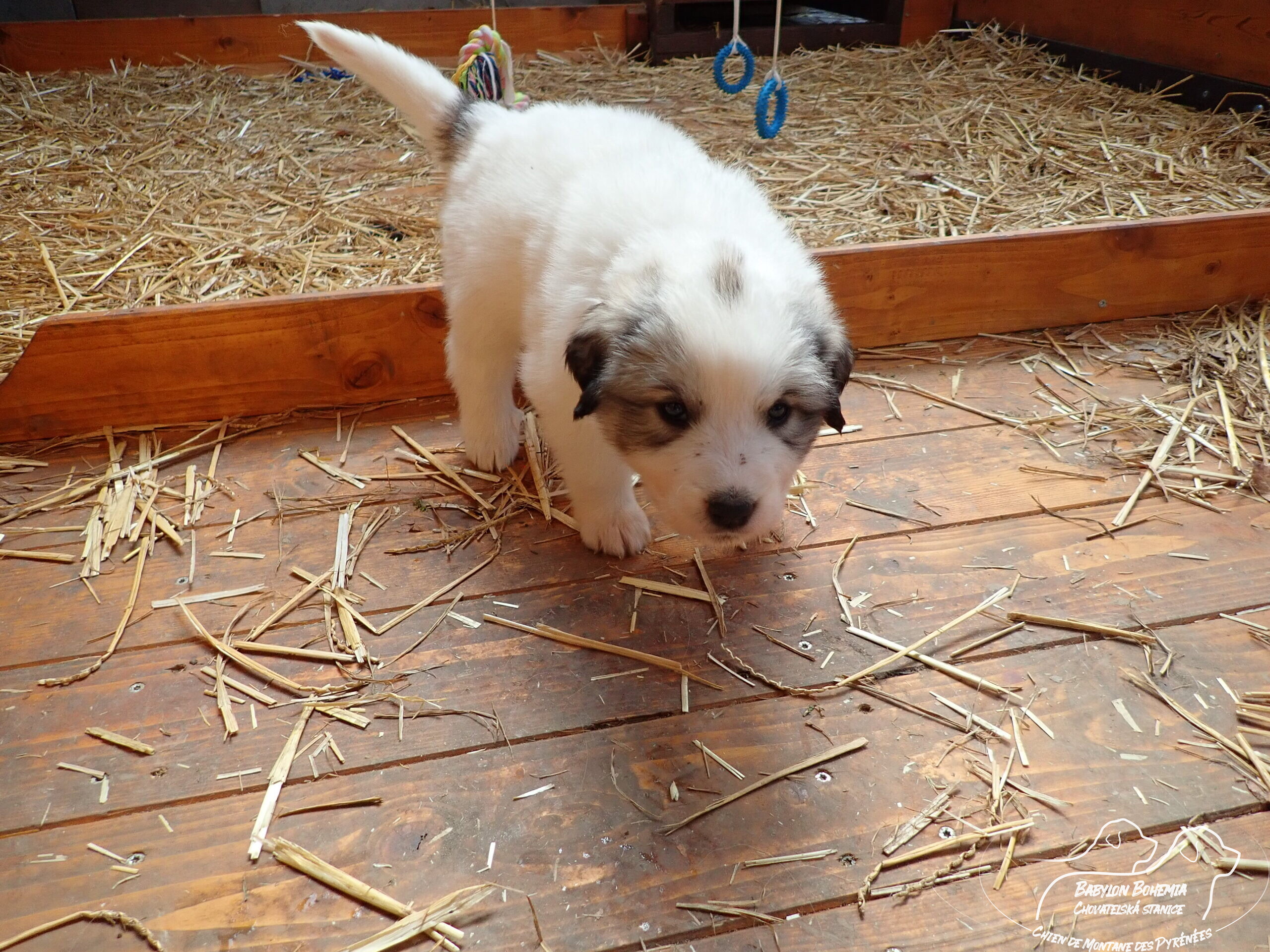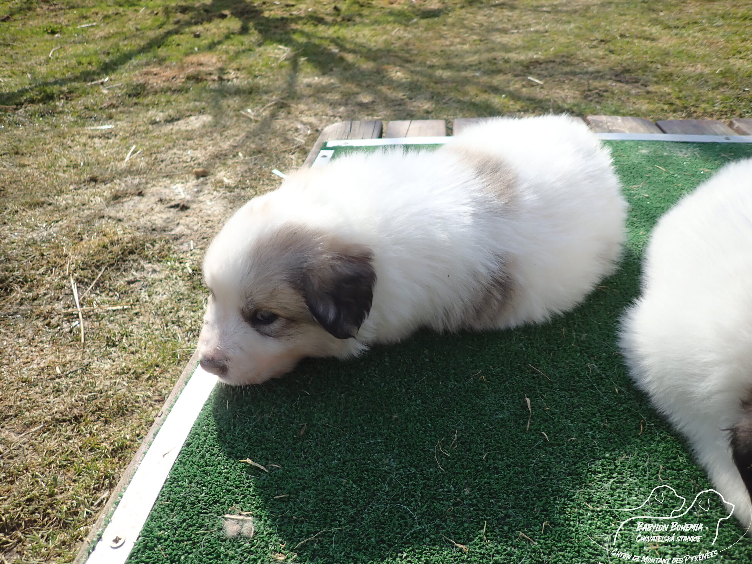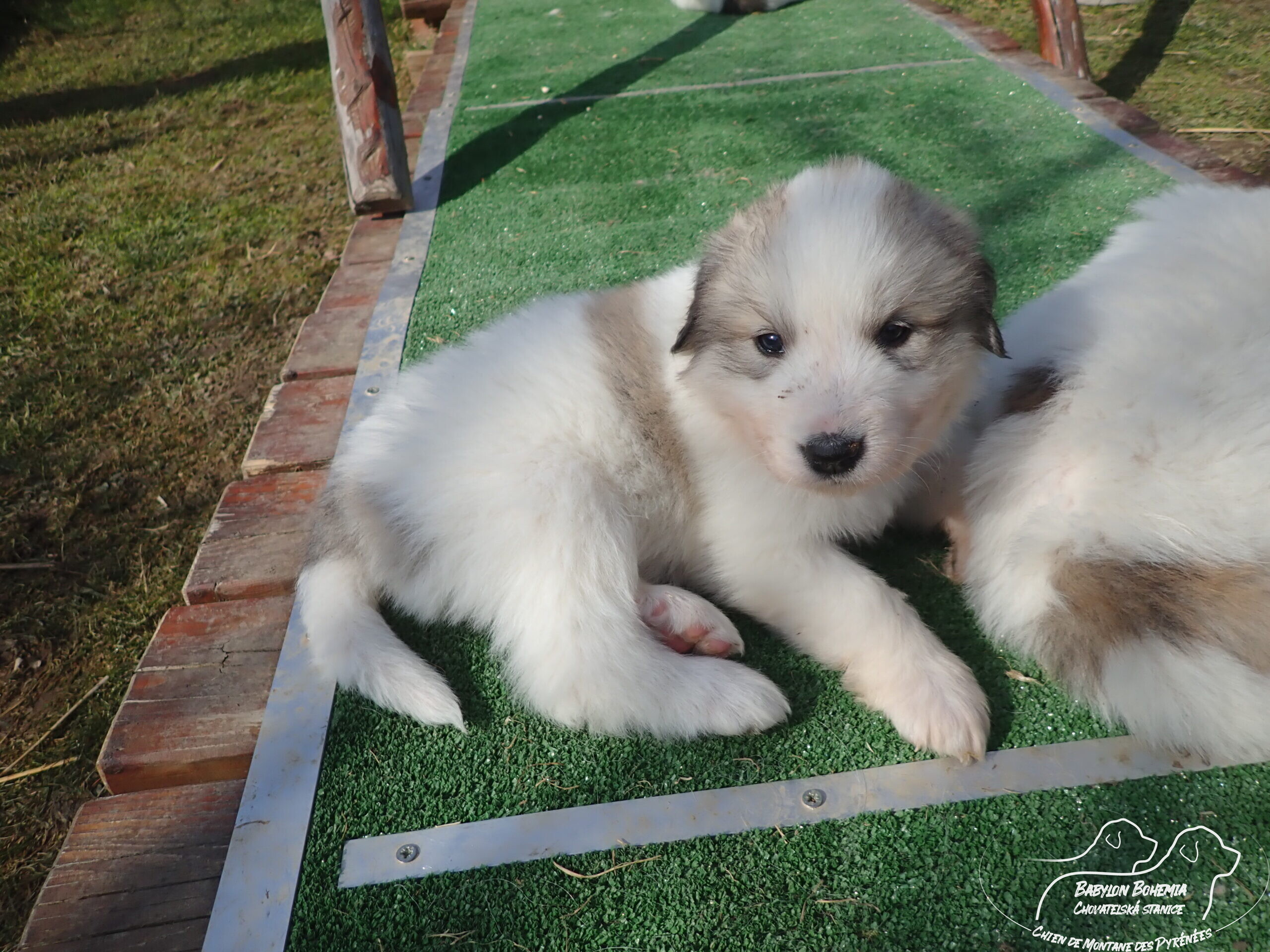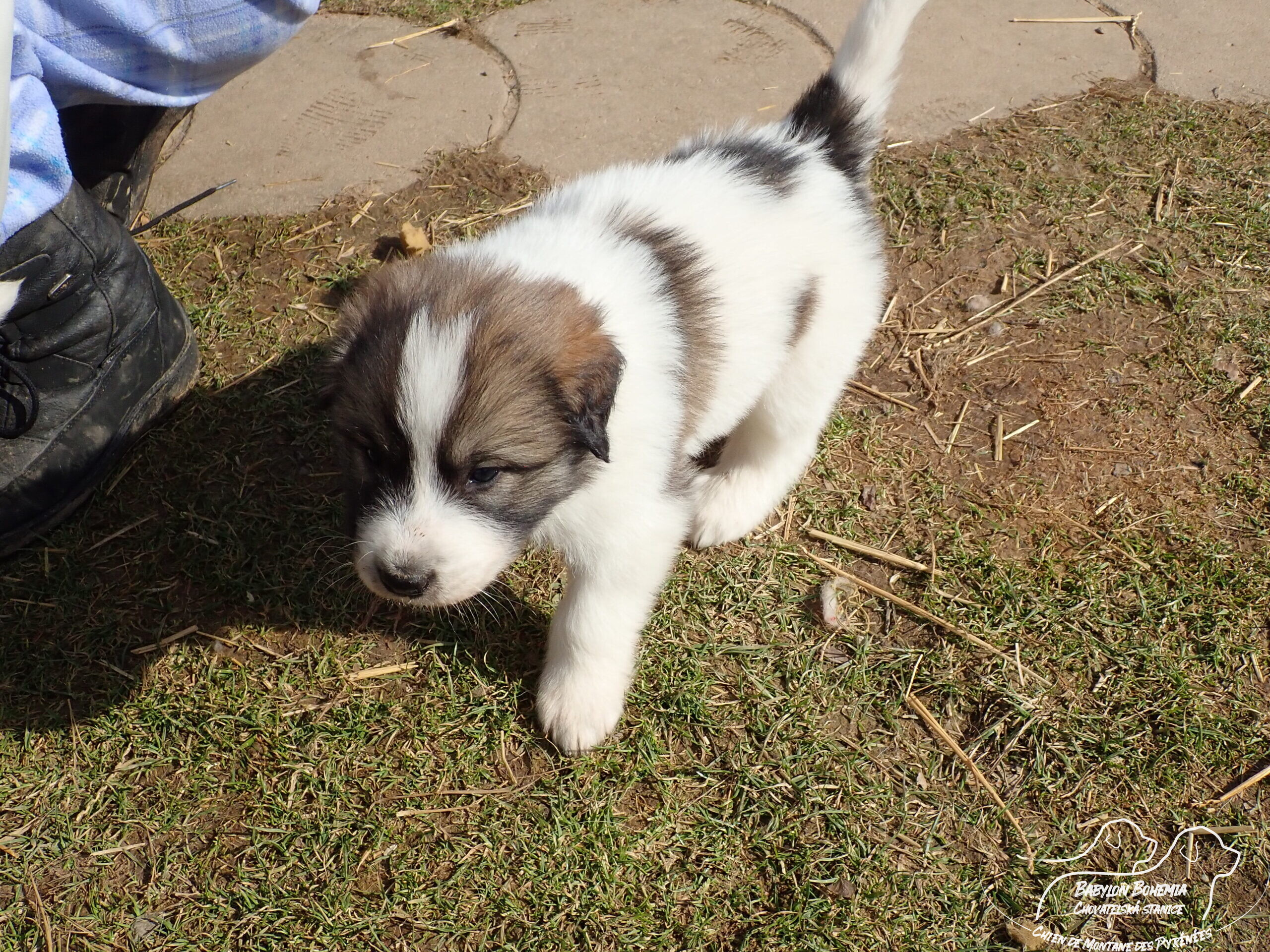 Štěňátka poznávají okolí kotce a nejbližší část zahrady. venku tráví většinu dne, užívají si sluníčka. Krmíme z misky, matka jim dává napít jen párkrát za den. Neustále je hlídá, ale zpovzdálí, aby měla od nich klid. Štěnda si hrají, perou se, vše ochutnávají a poznávají..