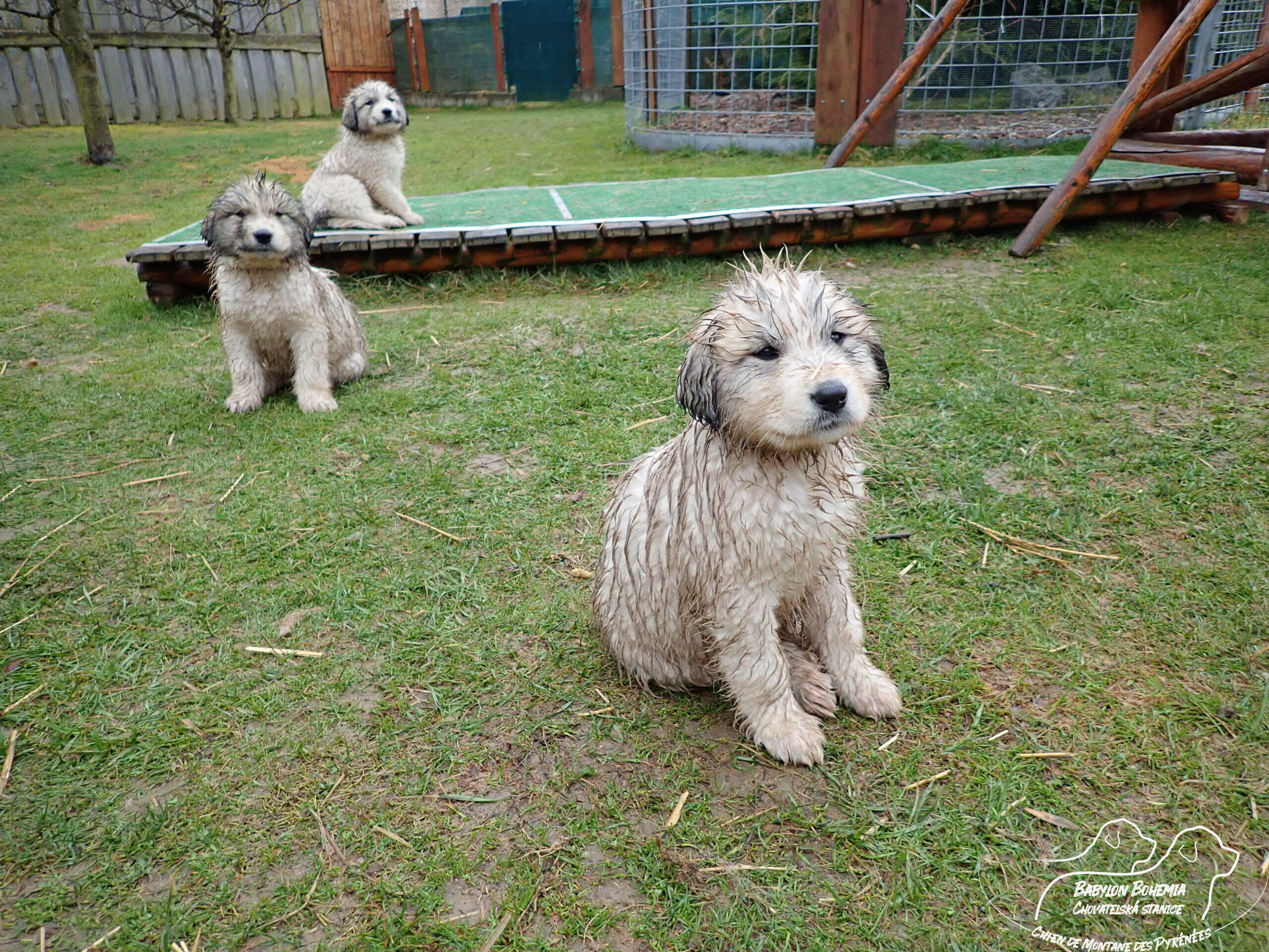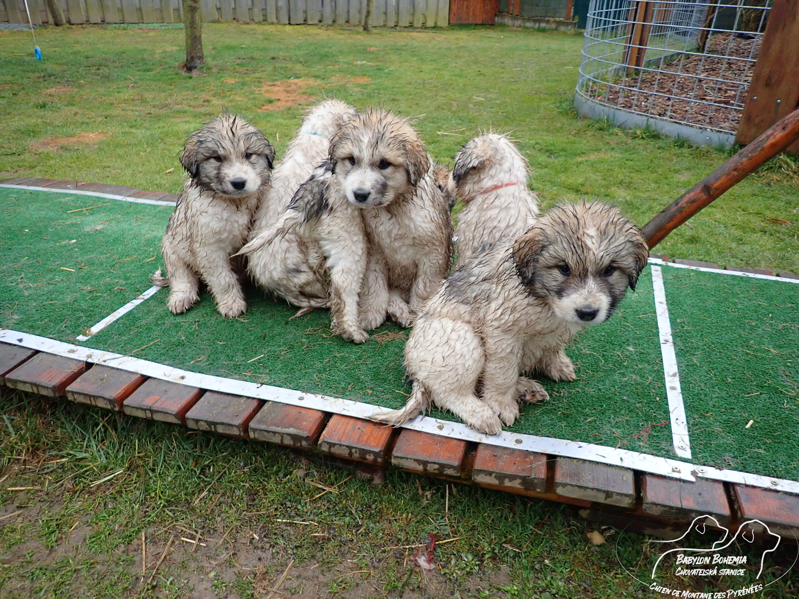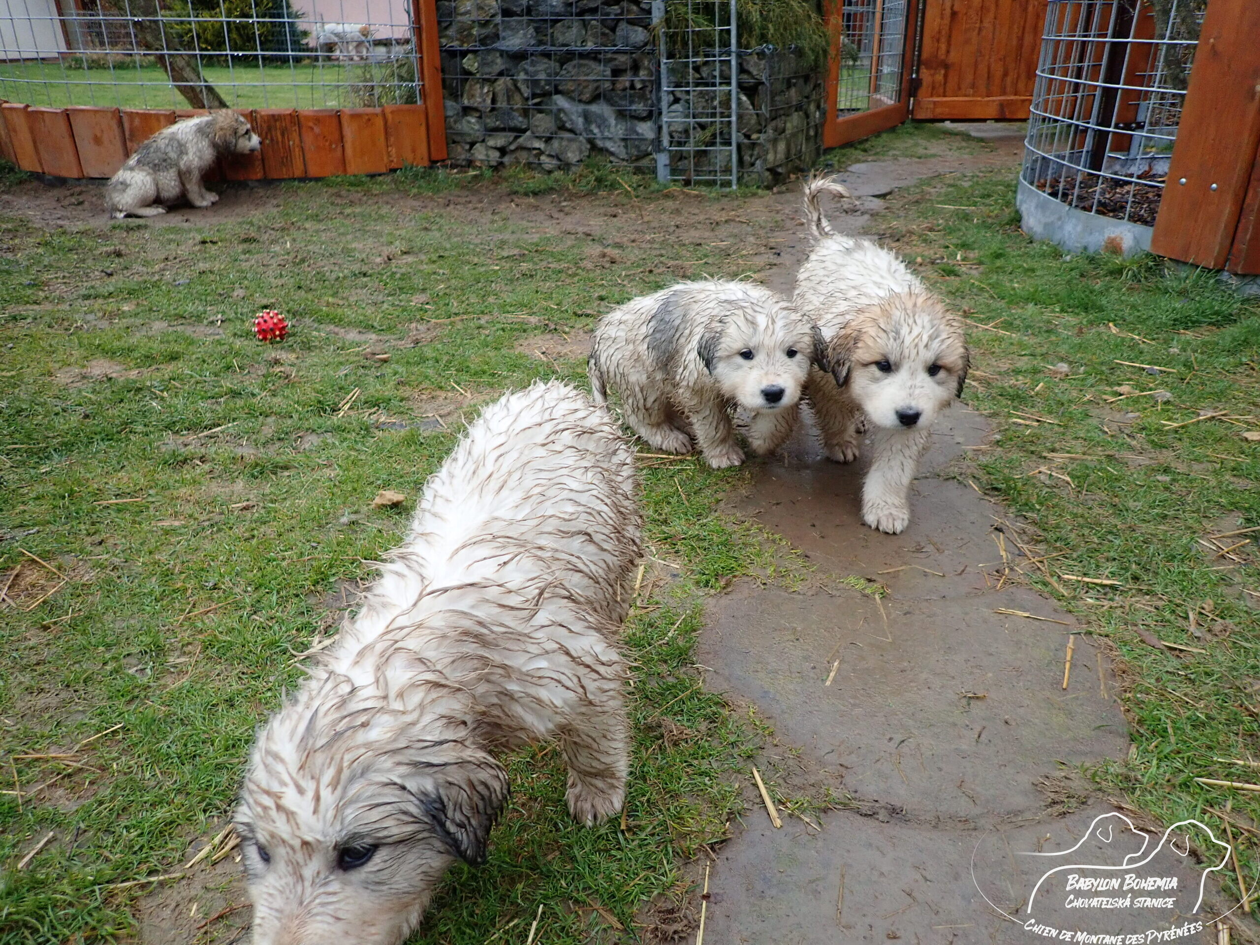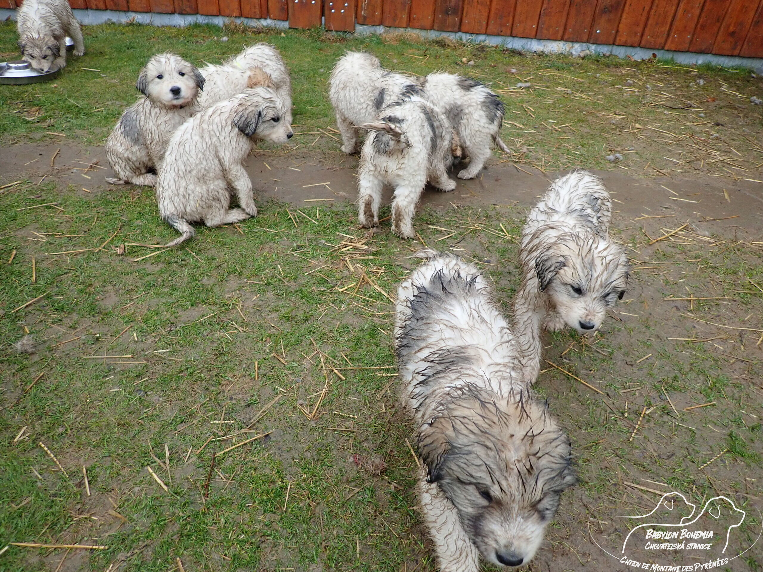 A teď pár deštivých fotek, od 30.3. u nás prší a štěnda podle toho vypadají. Jsou k nerozeznání, což dělalo problém i při očkování.