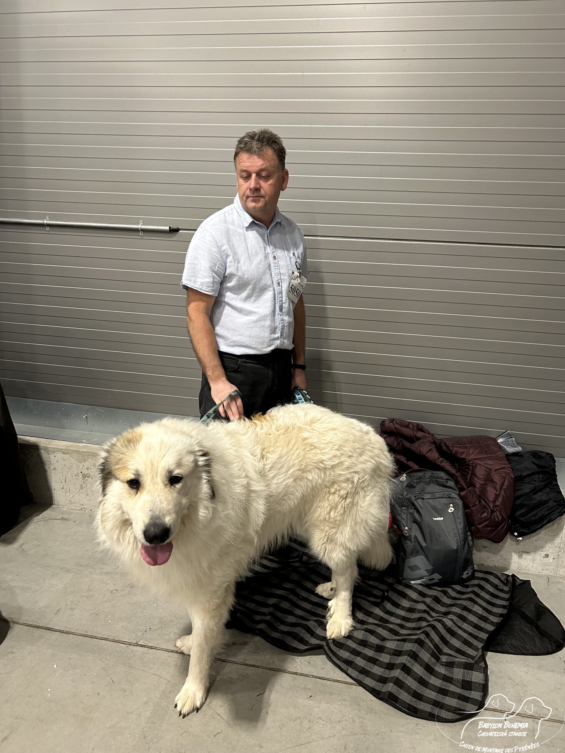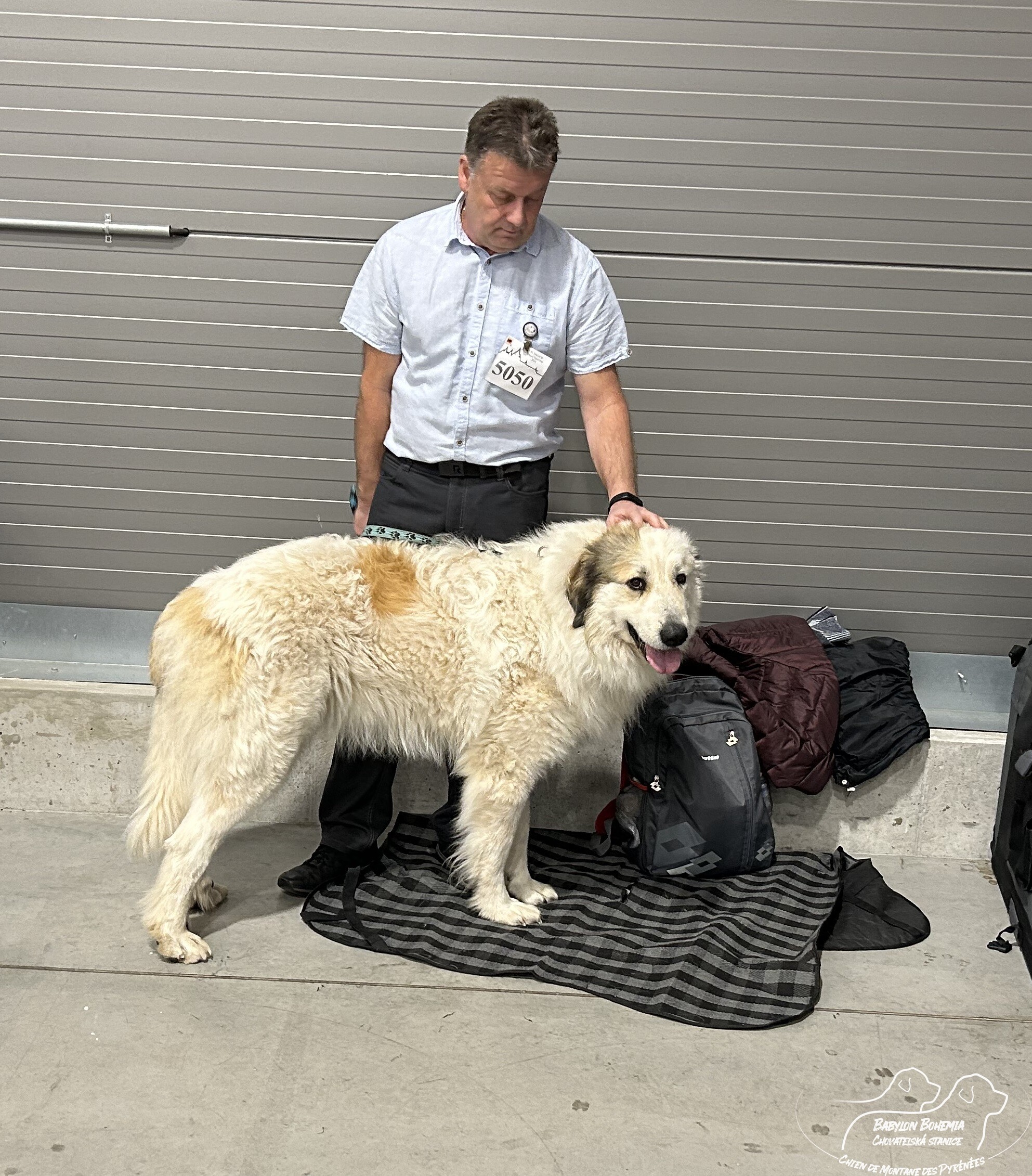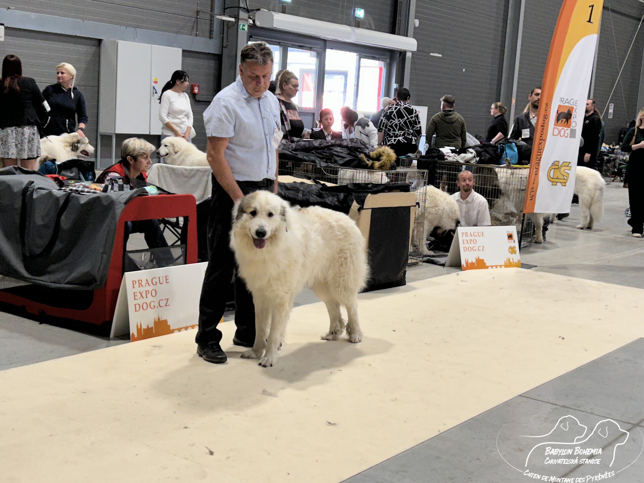 Z posudku - vyrovnaný pes, správný formát, rovná záda, dostatečná šířka hrudníku, xxxx nečitelné,  samec by měl být celkově více mohutný (více hmoty)