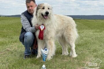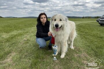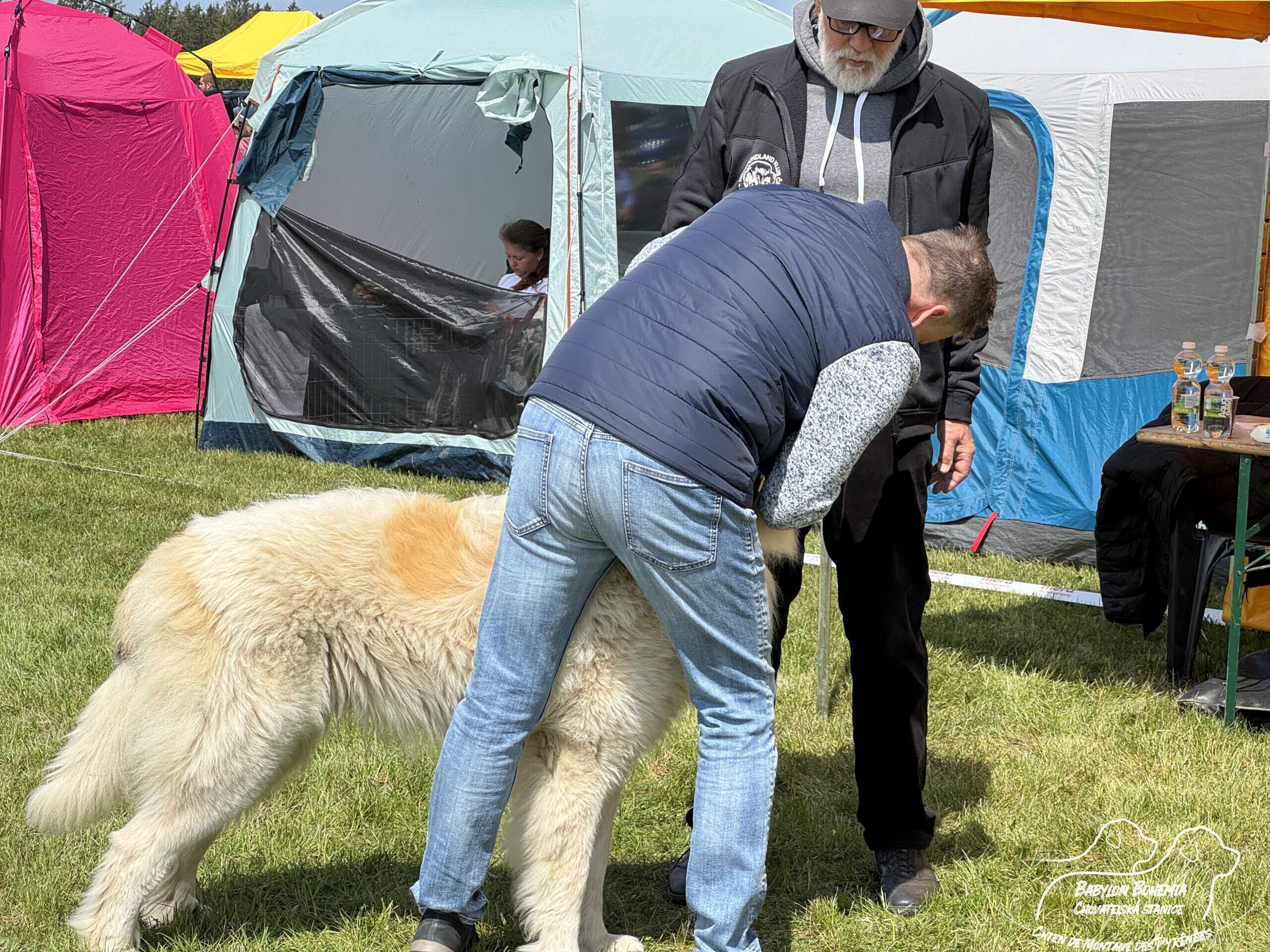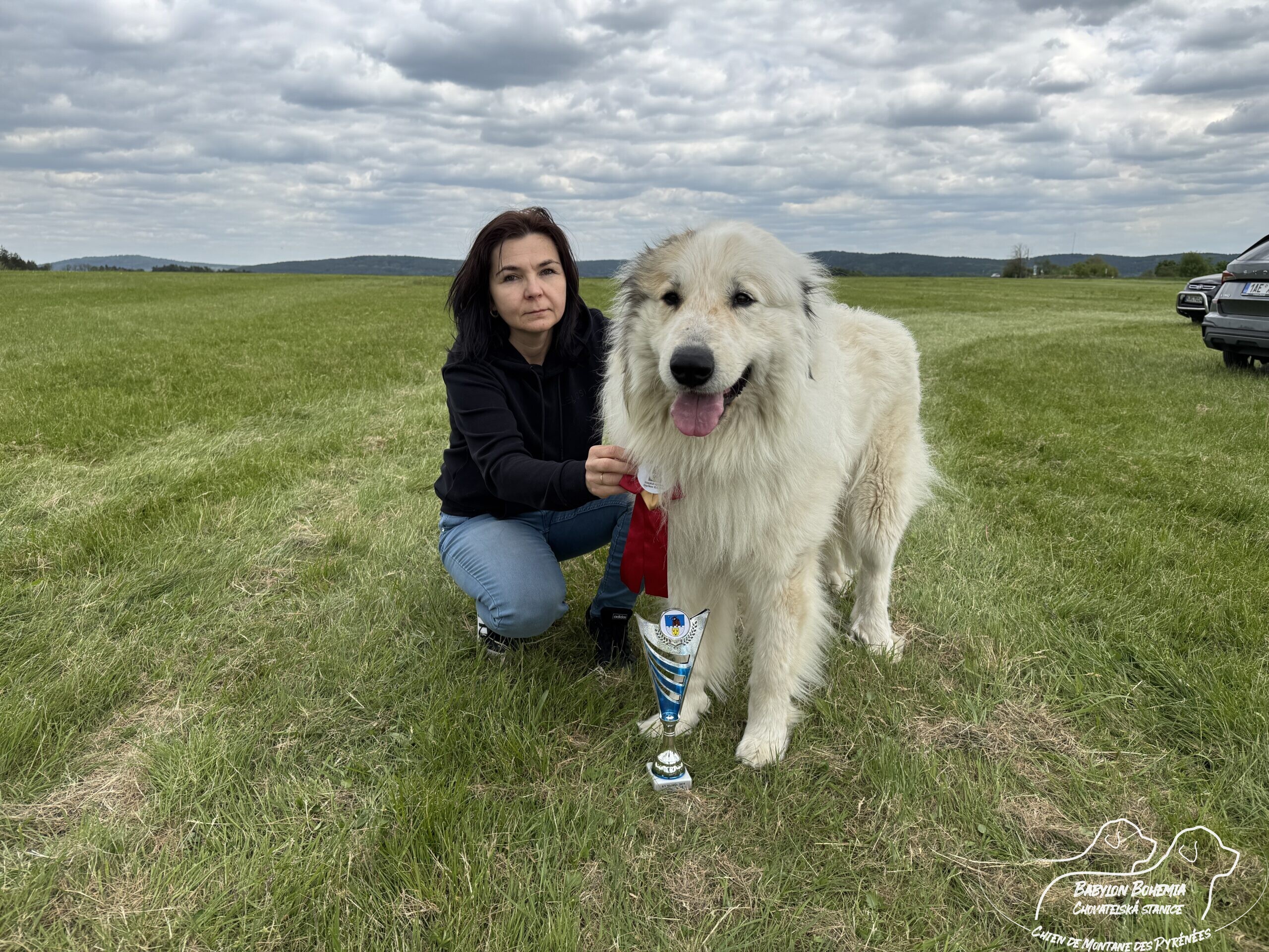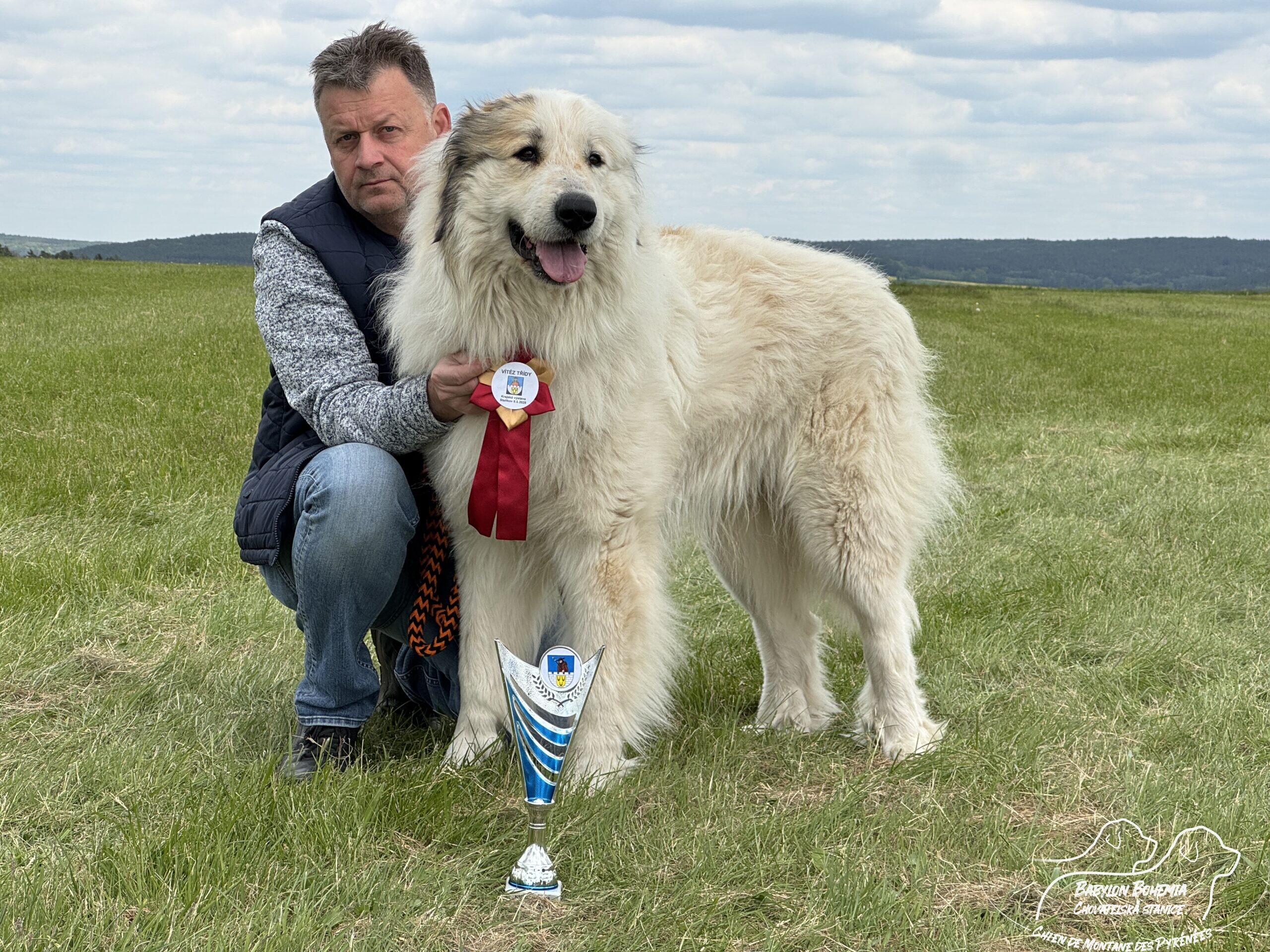 Z posudku - 3,5-letý pes, velký impozantní pes, velmi harmonického rámce, s typickou hlavou, velmi pěkně formovaný krk vycházející z přiměřeného předhrudí standartní hloubka hrudníku, silné zadní končetiny, s odpovídajícími paspárky, typická pohybová mechanika, ohon správně nesen, typický představitel plemene.