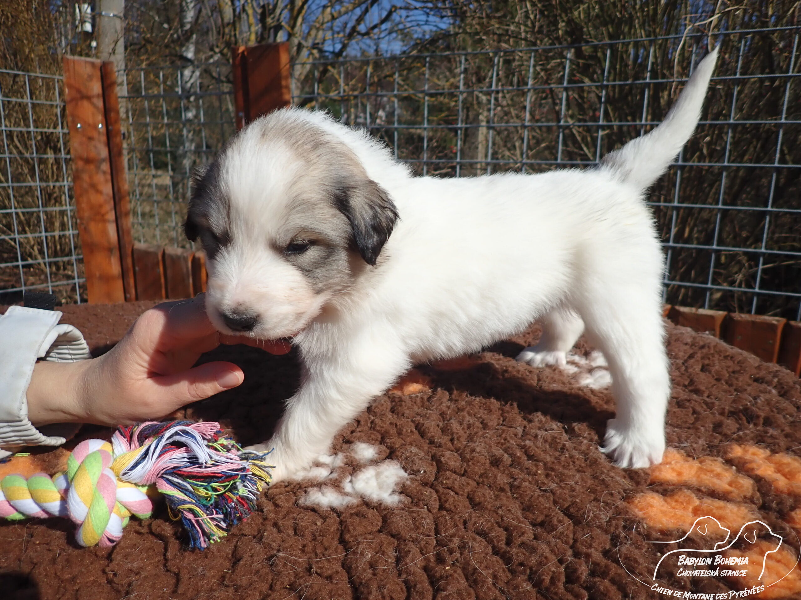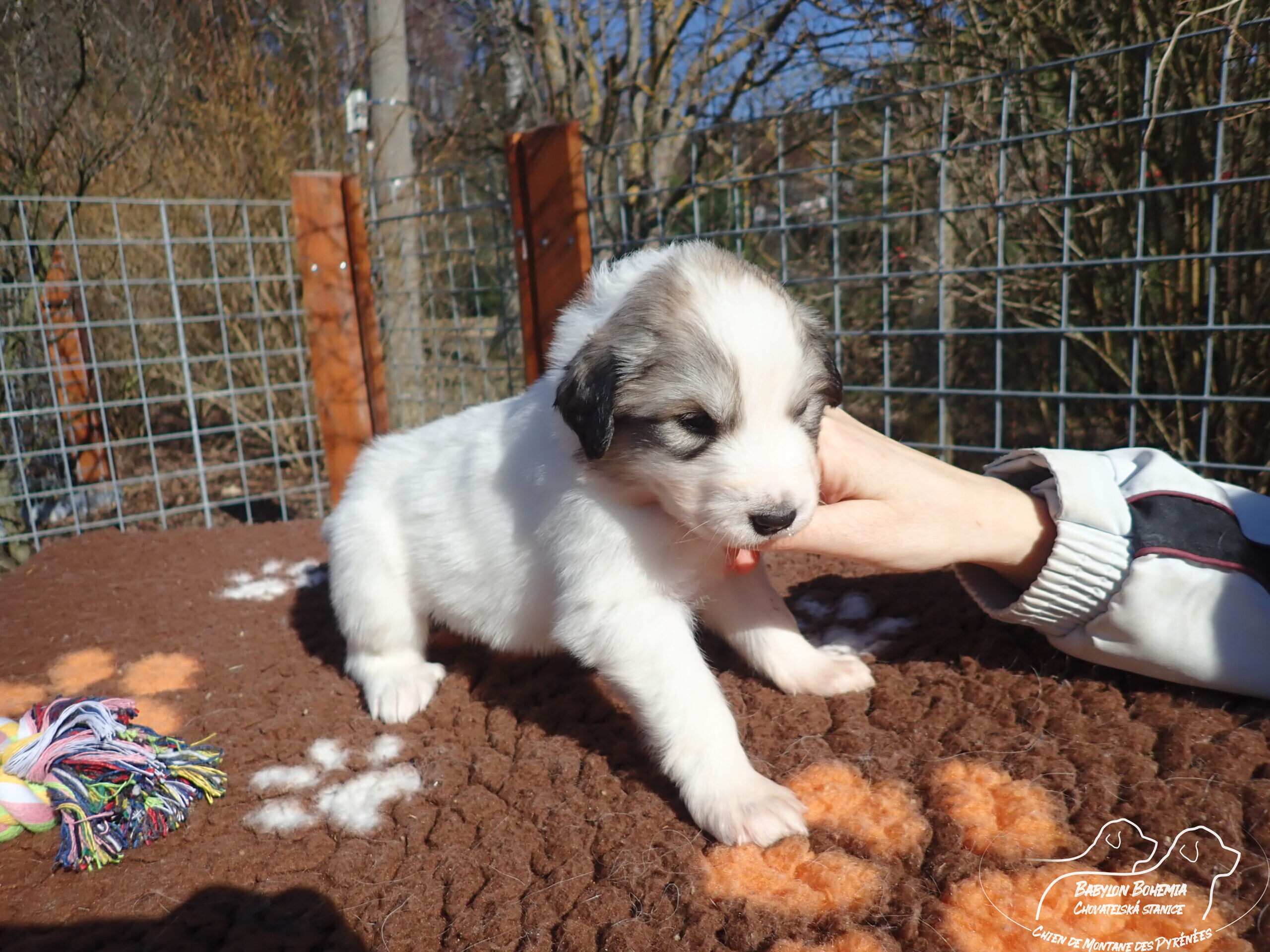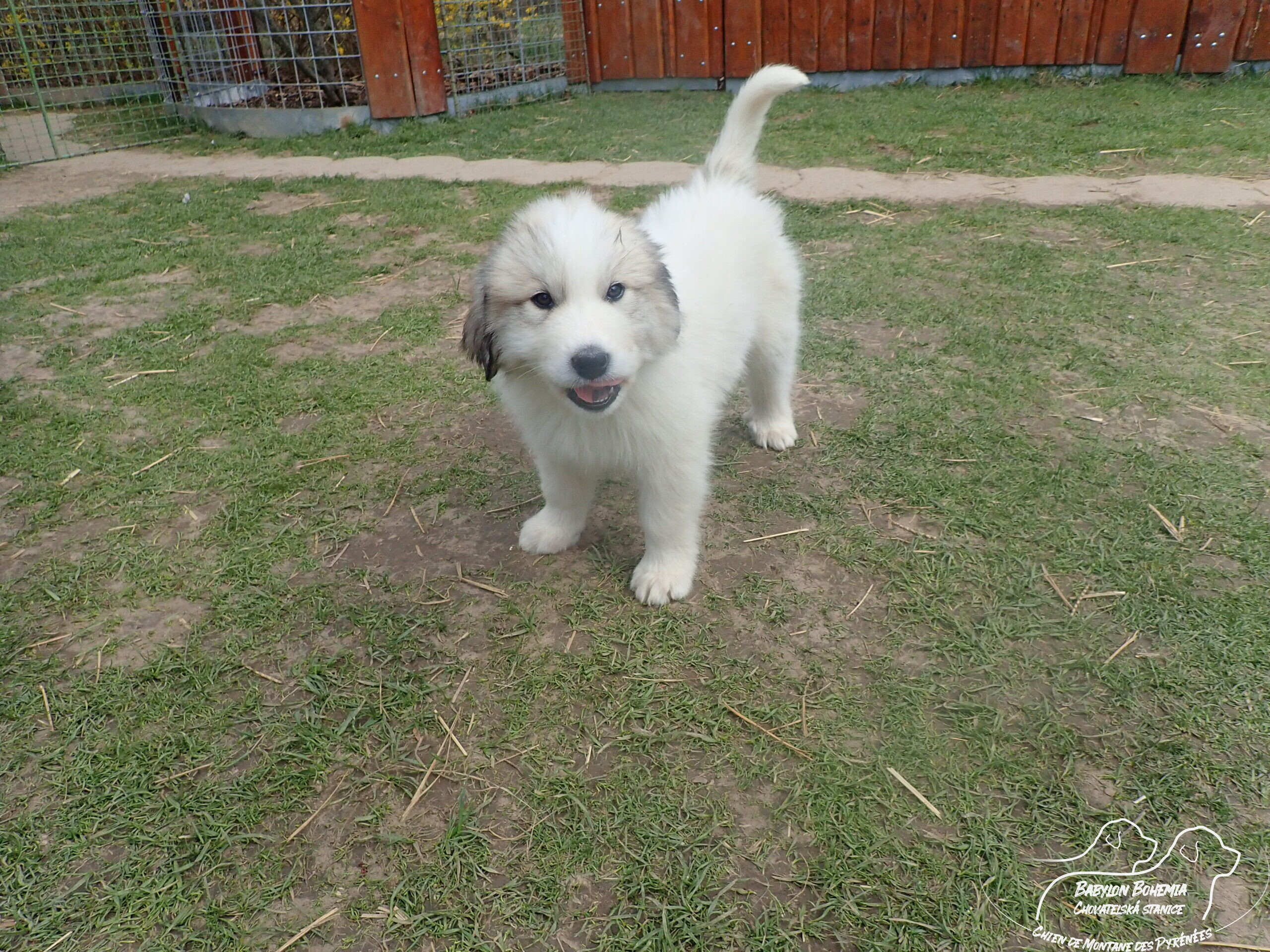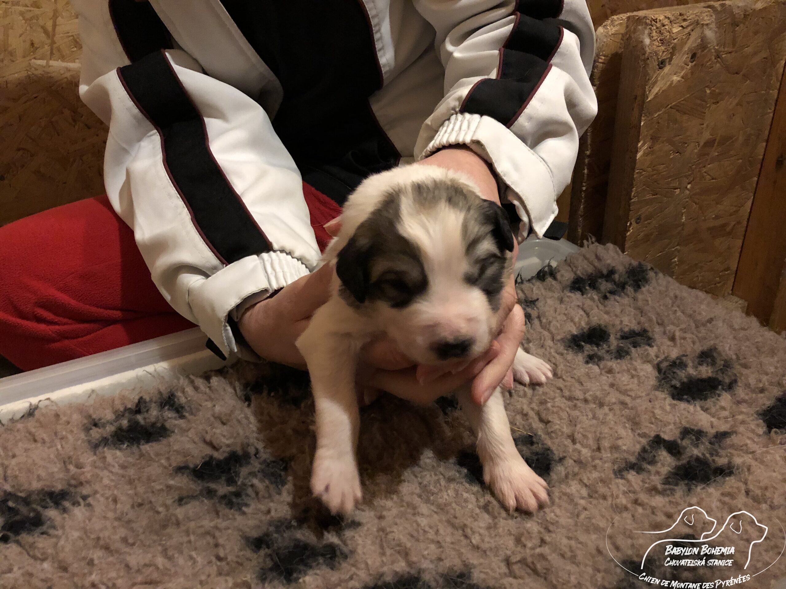 – pejsek se znaky – maska, 2 skvrnky na levém boku, znak u kořene ocasu